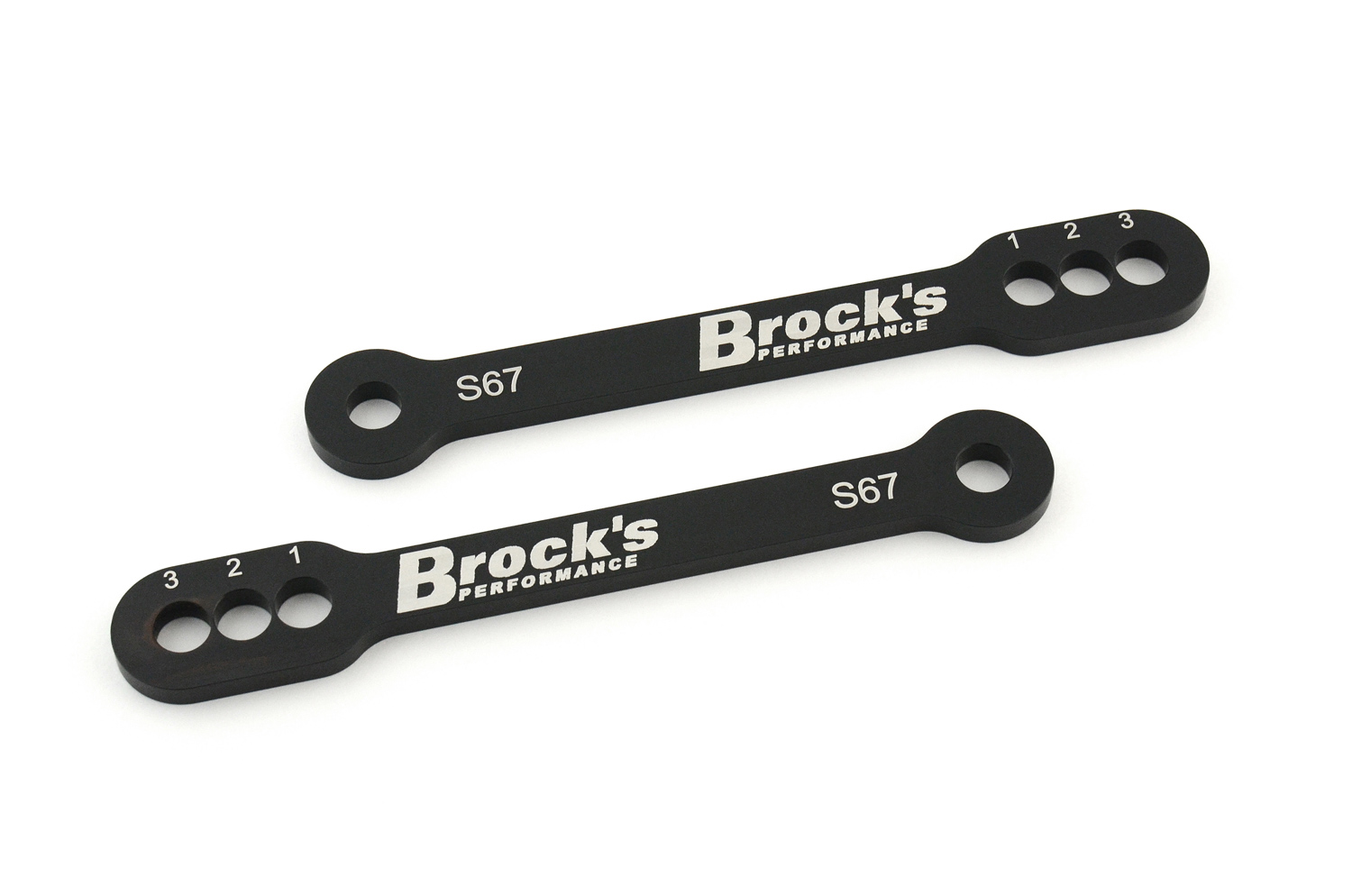 A Brock's original design, 3 hole lowering links (dog bones) will help to lower your center of gravity for quicker elapsed times and improved rider confidence. Chose from three positions; low-lower-“slammed” for quick and repeatable adjustments. CNC machined from billet 6061-T6 aluminum with a black anodized finish.