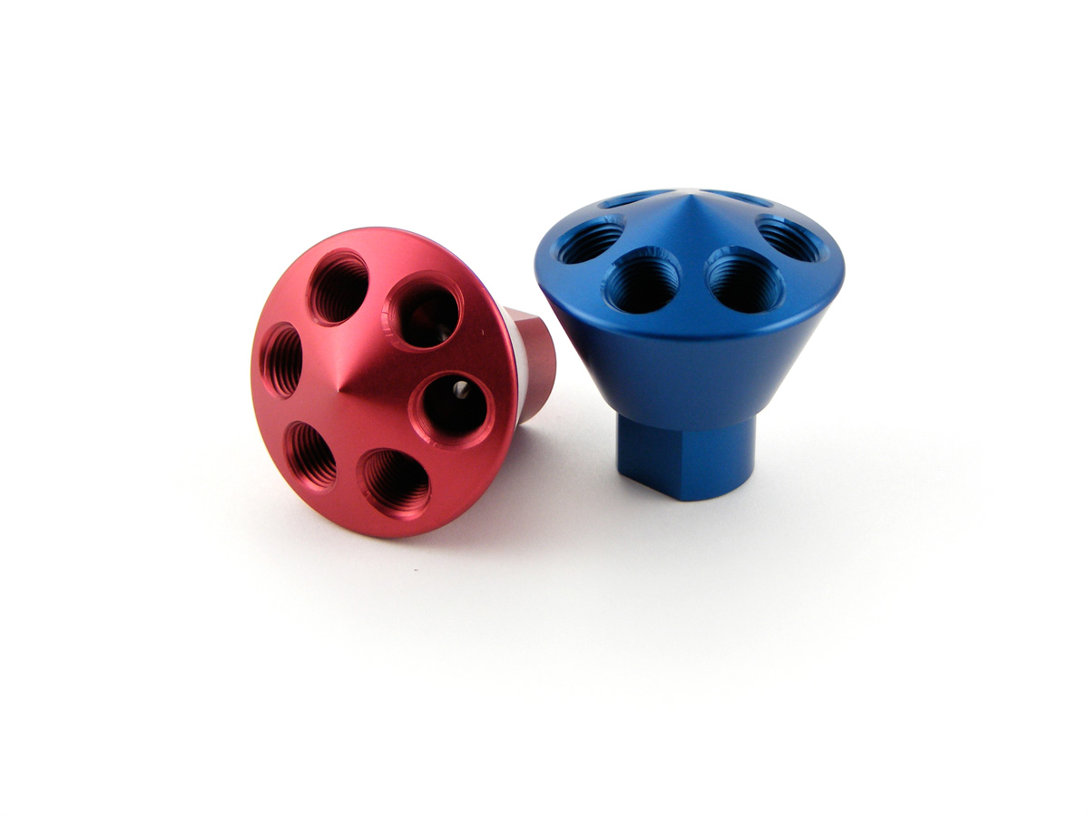 These nitrous oxide distribution showerheads will assure equal and accurate distribution of the fuel and the nitrous to all four cylinders.