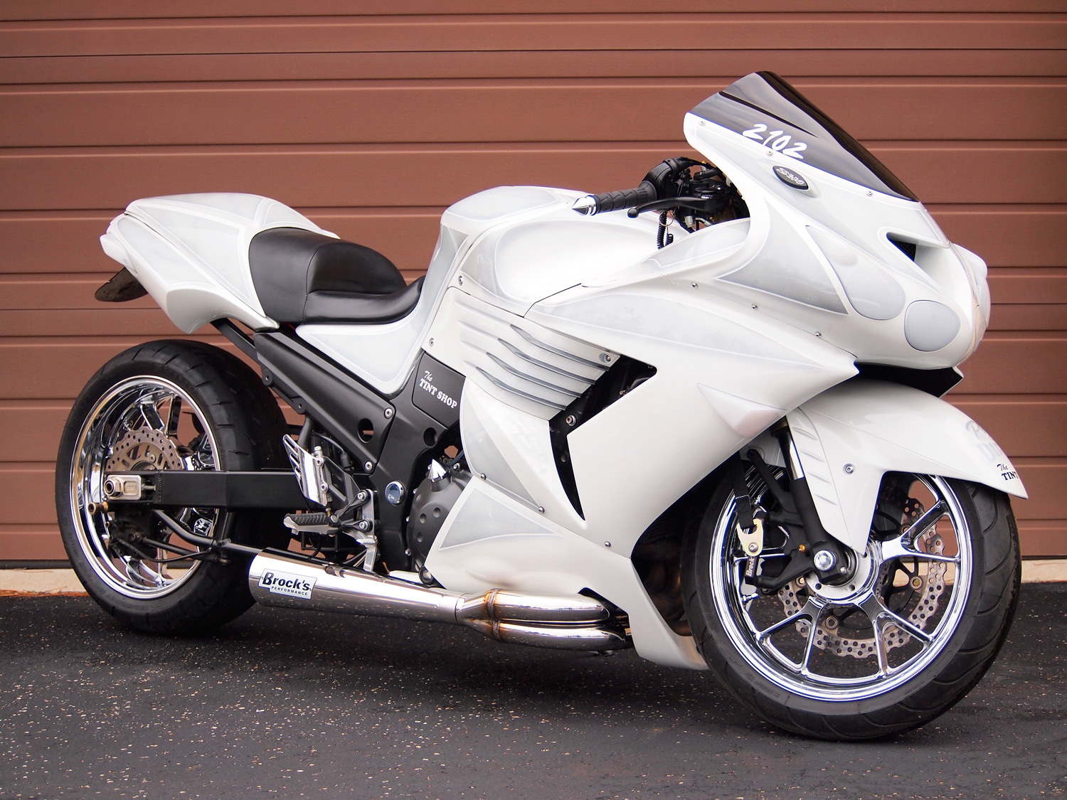 acquired from Brock himself professionally drag racing street bikes, are merged into a purpose-built side exit system.